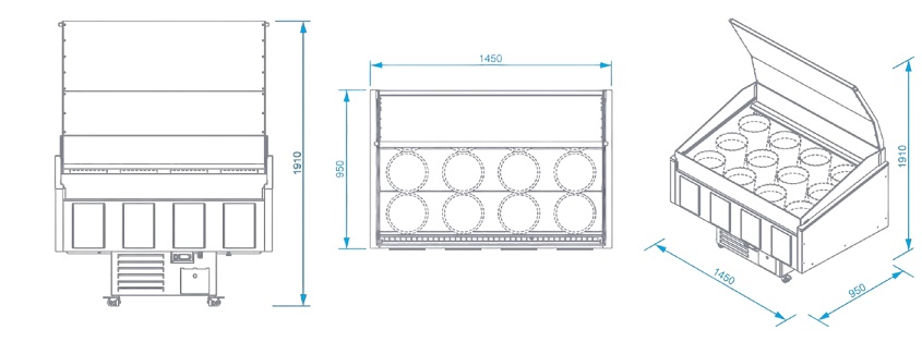 En kyldisk, avsedd för impulsiv shopping, kortvarig exponering och förvaring av blommor. En blomsterdisk är en självbetjäningsdisk som inte kräver närvaro av en säljare. Kaskaddisplay och spegelkåpa säkerställer fullständig exponering av buketter.
