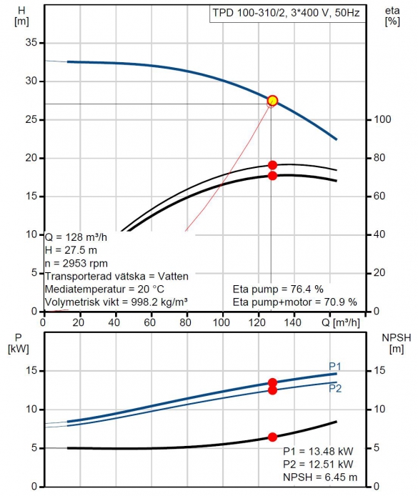 • Cirkulationspump Grundfos TPD 100-310/2,  15kW  128m³/h  27,5m 3x400V 50Hz
