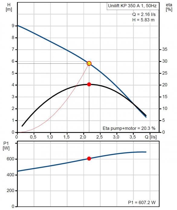 Resulterande lyfthöjd för pumpen 5,83 m