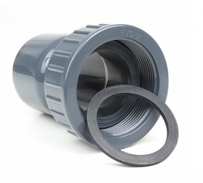 2/3 unionskoppling av tillverkad av PVC-rör har en limmuff x invändig gängmutteranslutning.