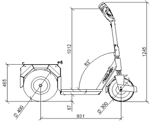 Måtten på fordonet är: L: 1486 x B: 802 x H: 1295 mm.